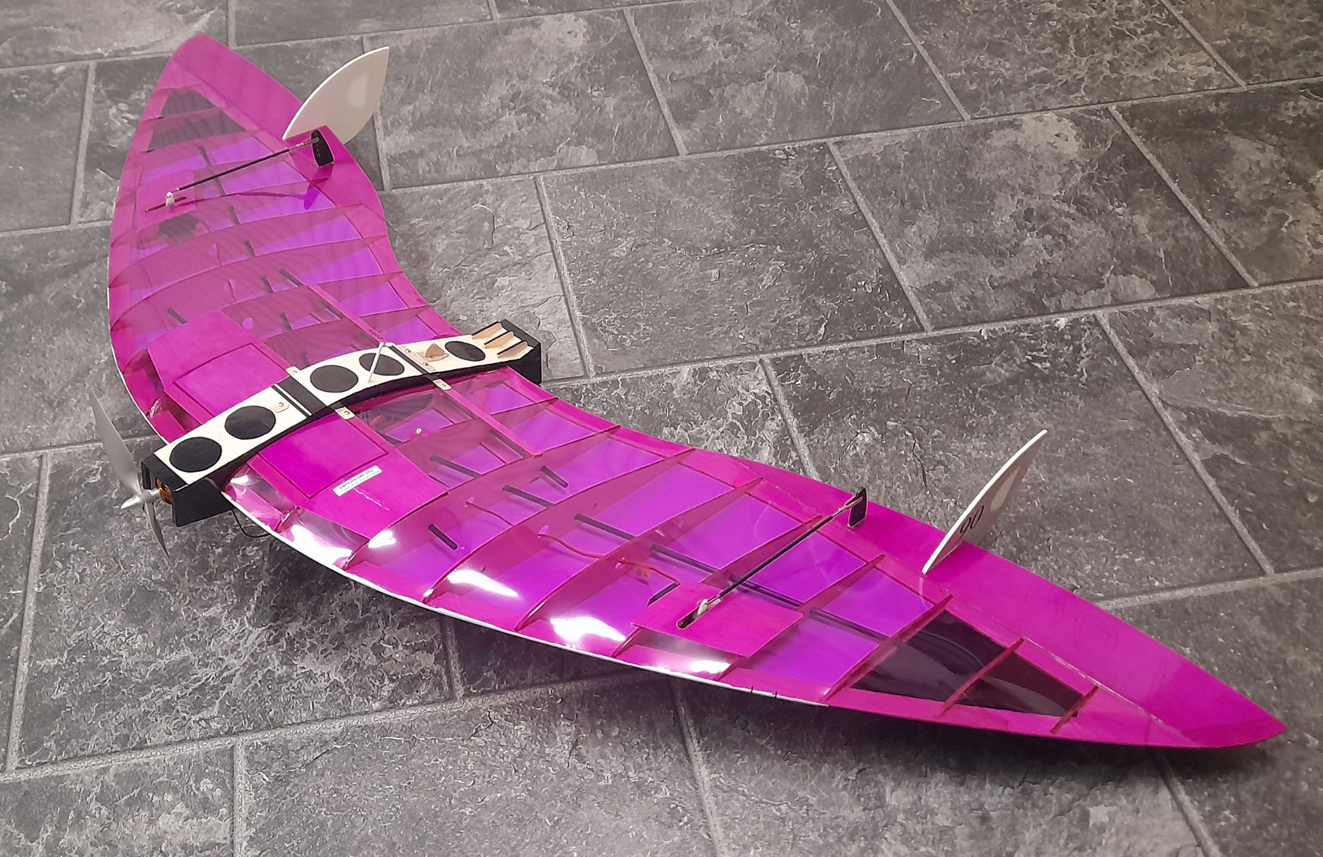 Bird (2021 Nr 79) - Spv: 1000 mm, Vikt: 250 gr, ~20 gr/dm², Motor: Suppo 2204/14, Prop APC 7x4, ESC: 10 A, LiPo: 450 mAh 2s, Servo 2x EMax metalldrev 12g - Inga vanliga roder utan vingarna vrids (mix skev/höjd) - Byggbilder